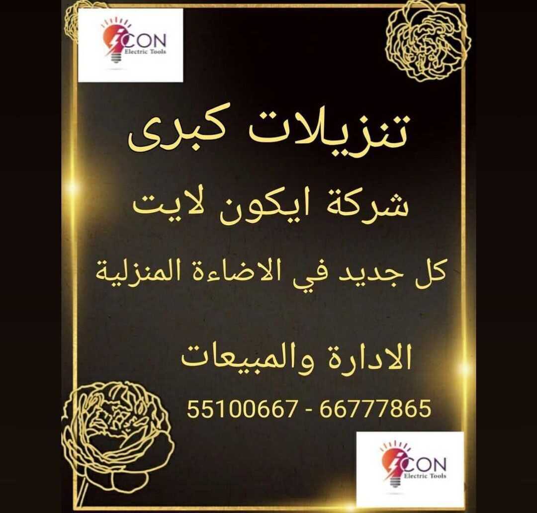 مبيعات شركة Icon Light متخصصة في إضاءة المنزل ، كهربائي متوفر الإدارة والمبيعات: 66777865 – 55100667