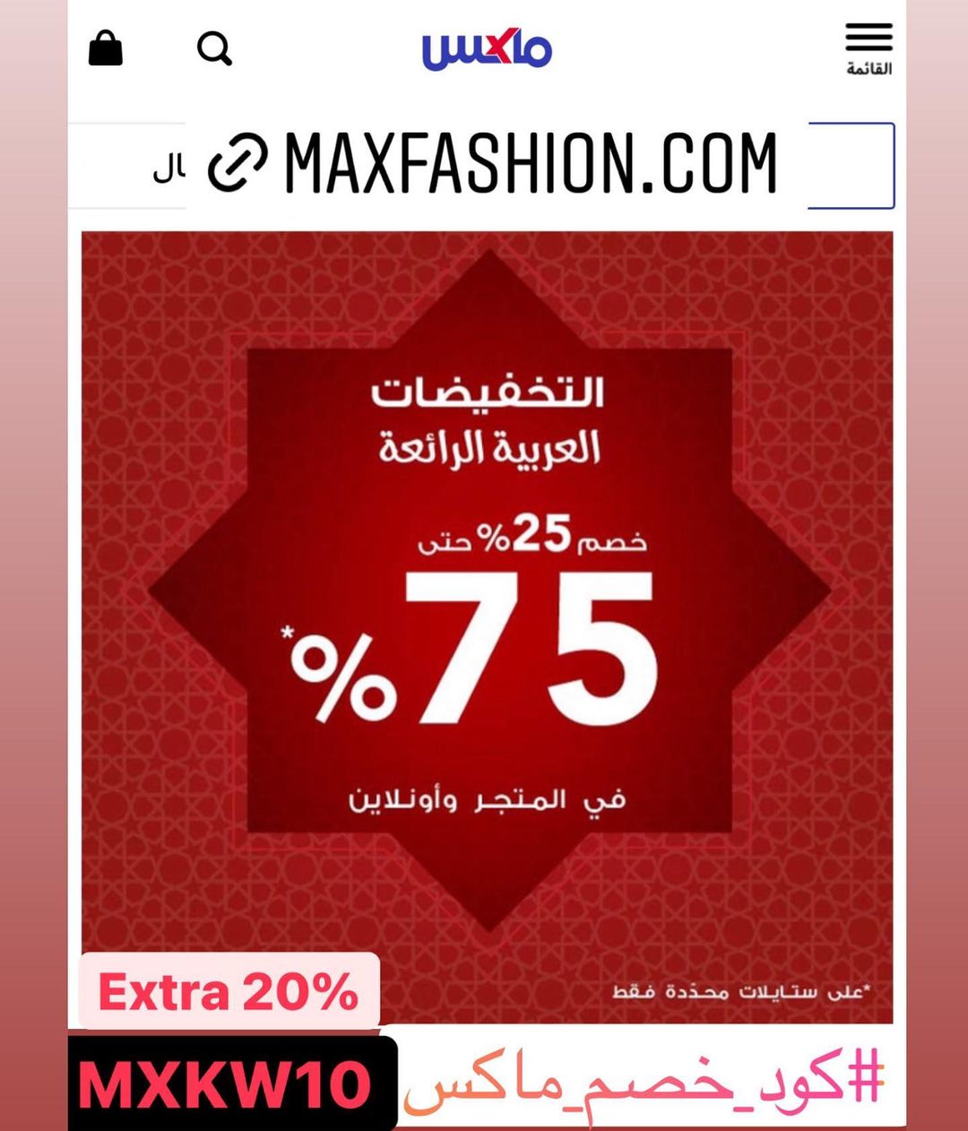 سجل بياناتك بموقع ماكس واشتري منتجاتك المفضلة مع خصم إضافي 20% من ماكس فاشن باستخدام الكوبون