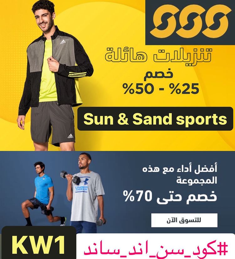 خصومات حصرية بموقع سن اند ساند سبورتس لكافة الماركات العالمية للملابس والمستلزمات الرياضية مع خصم اضافي لمستخدمي كود الخصم KW1